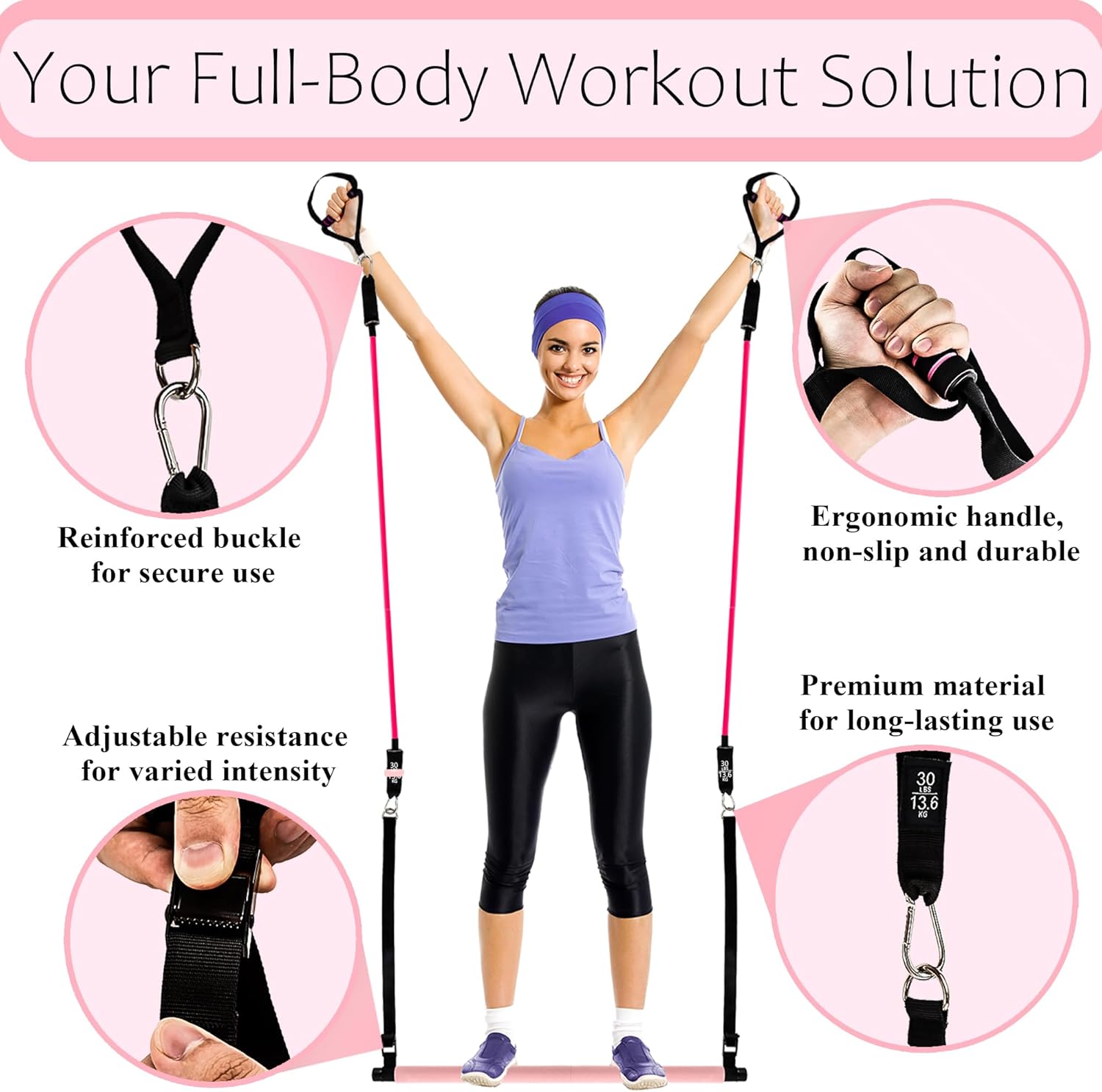 - Complete Pilates Bar Kit: The C Crystal Lemon Pilates Bar kit includes a three-section, easy-to-assemble bar, adjustable straps, two 30 lbs resistance bands, two 40 lbs resistance bands, a door anchor, and two foot straps. Perfect for a full-body workout.