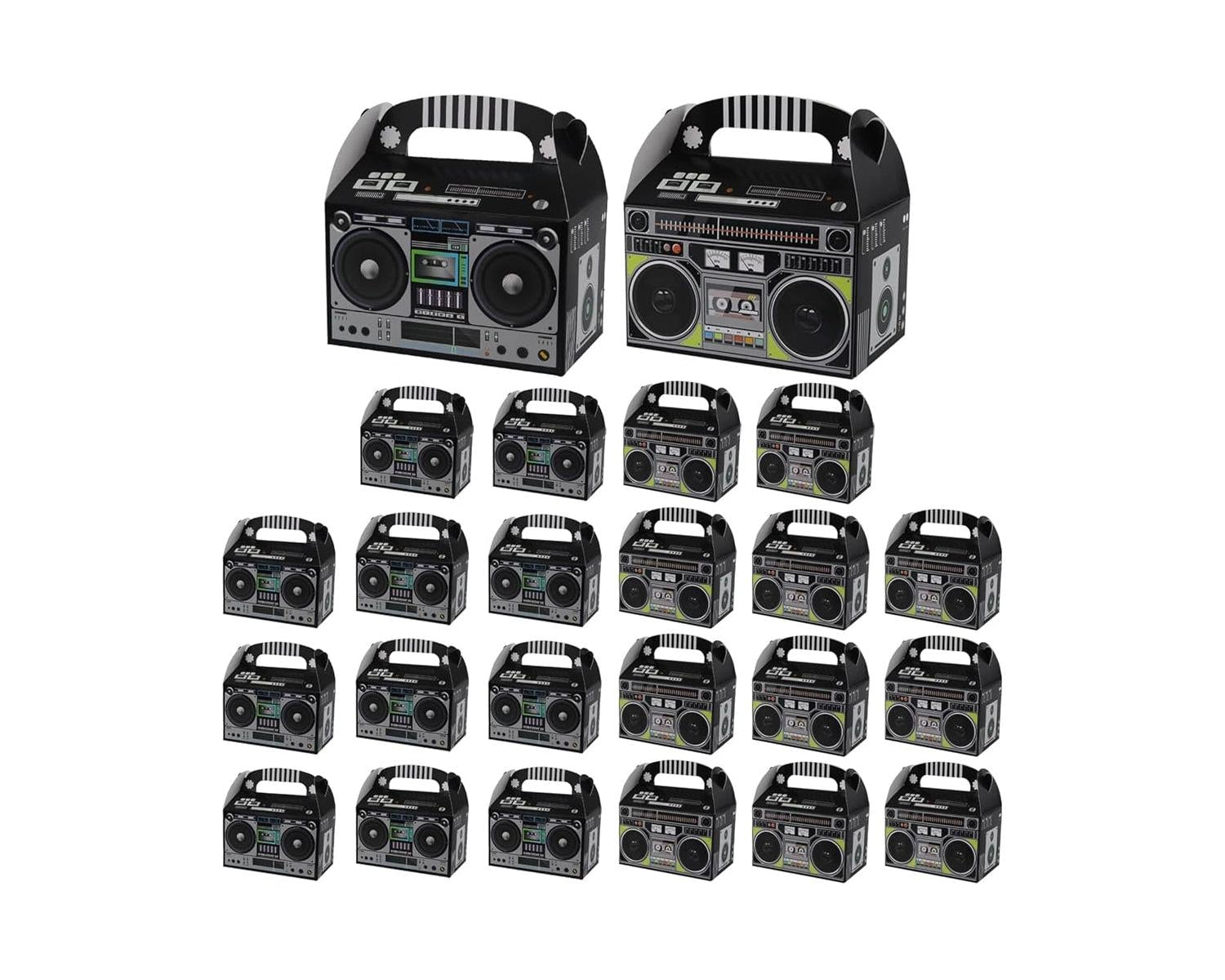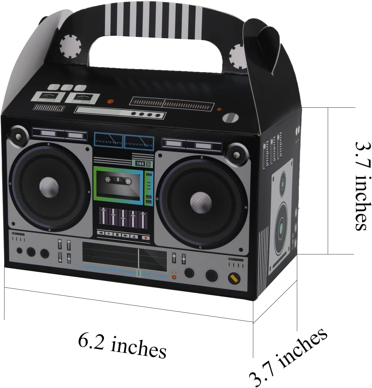 Easy Cool Retro Style: Our 90s party favors boxes feature an eye-catchy retro style depicting a boom box inspired by the original 80s design. The design accurate, with exceptional details for a realistic appearance and a genuine retro vibe!