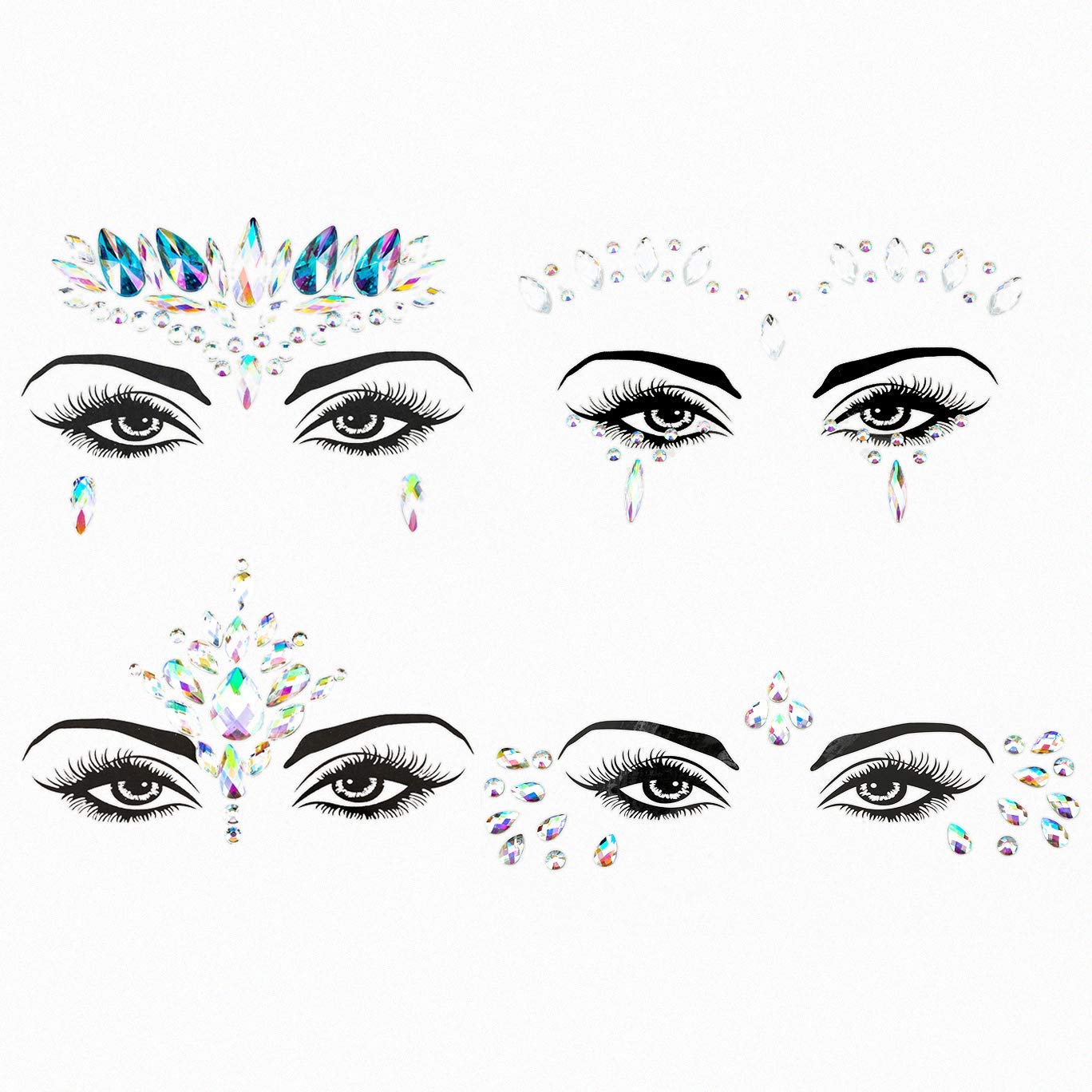 - Four Different Sets of Rhinestone Accents - Reflective face rhinestones/ body jewelry stickers are sure to make an impression. Easily readable and distinct, sure to enhance the features of any beauty so daring to apply them.