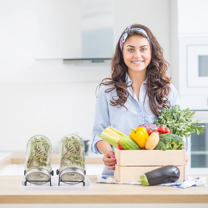 - Complete Sprout Kit: The complete sprout jar kit includes 2 x sprouting jars, 2 x stainless steel lids with metal mesh, 2 x jar stands, and 1 x drip tray, that make sprouting much easier and more enjoyable!